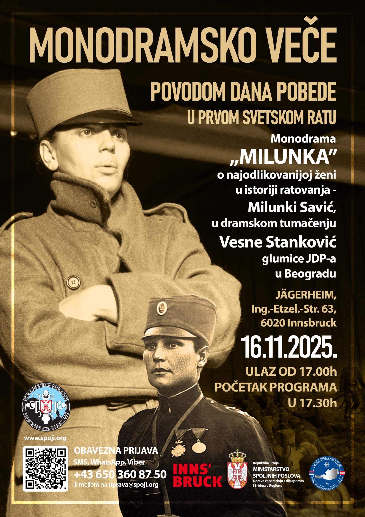 НАЈАВА: Монодрамско вече поводом Дана победе – МИЛУНКА САВИЋ у Инзбруку