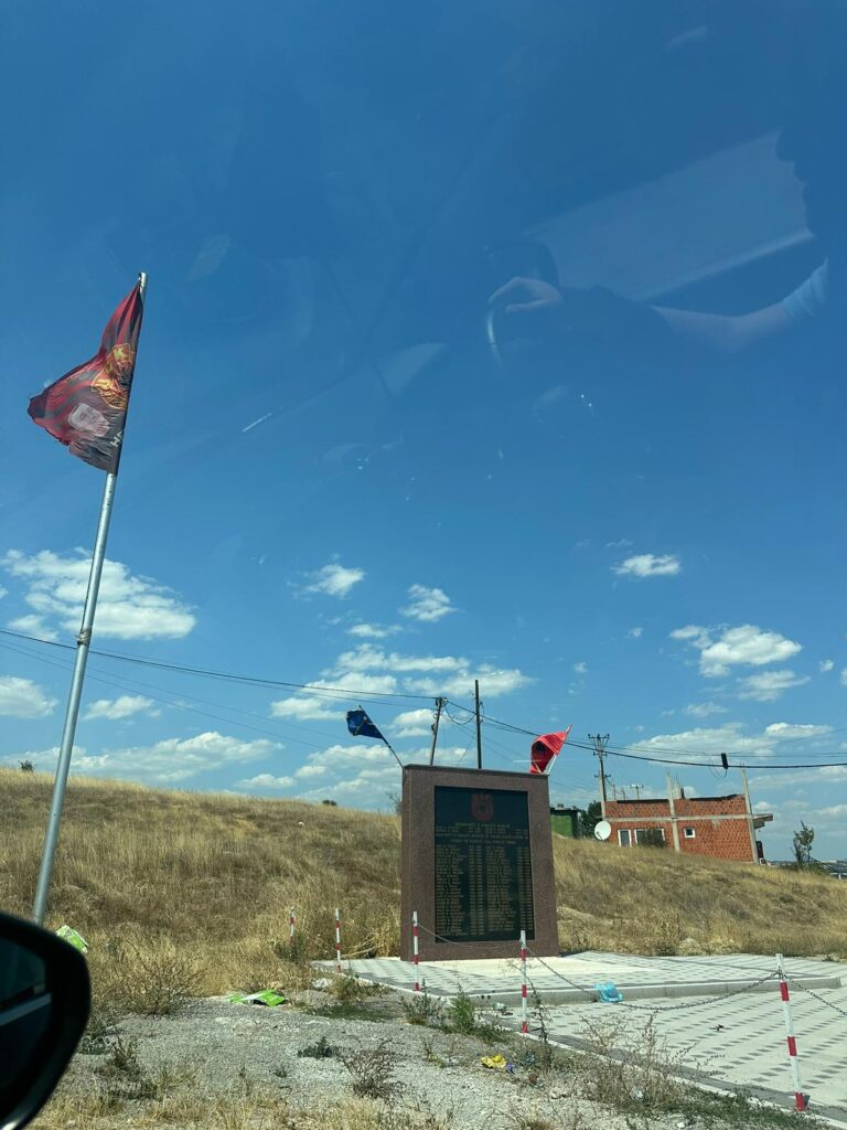 Von den lieben Mašićs in Prilužje ging es weiter und entlang der Straße überwiegend albanische und vereinzelt sogenannte „kosovarische“ Fahnen … und gefühlt alle 100 Meter ein UÇK-Denkmal …